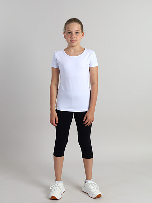 Бриджи длиной ниже колена, без боковых швов. Верхний срез обработан швом вподгибку, с предварительно притачанной резинкой.