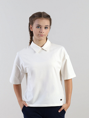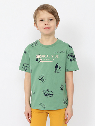 Футболка детская с коротким рукавом. Вырез горловины круглый, обработан притачной бейкой из рибаны с эластаном.