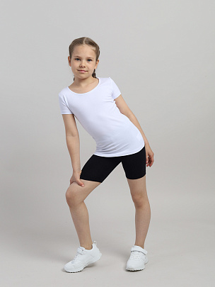 Футболка для девочки с коротким рукавом. Вырез горловины круглый, окантован бейкой из основного полотна.