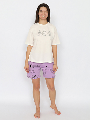 Футболка со спущенным плечом и короткими рукавами. Спереди карман декорирован ришелье. Горловина круглая, обработана притачной бейкой. По ростку горловины шов притачивания закрыт долевиком.