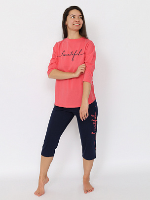 Пижама женская (джемпер, бриджи) коралловая
