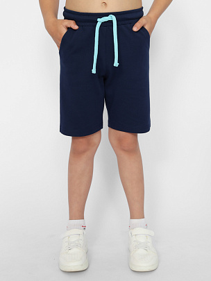 Комбинированная футболка с короткими рукавами. Горловина круглая, обработана узким воротником из полотна с эластаном. Перед футболки с горизонтальным швом чуть ниже линии груди. Перед футболки декорирован принтом "время машин". Шорты с боковыми карманами. Пояс притачной, с резинкой внутри и шнуром.