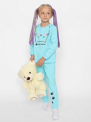 Пижама для девочки (футболка, брюки) светло-бирюзовая