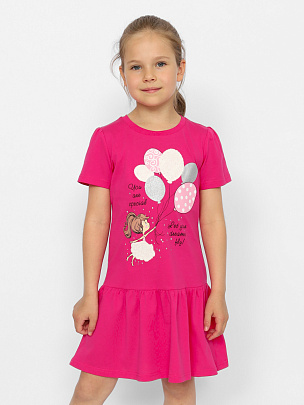 Нарядное платье свободного силуэта, с короткими рукавами. Нижний слой платья из хлопковой кулирки. Верхний слой платья из сетки с блестящими кружочками "конфетти". Сзади застежка на пуговицы.